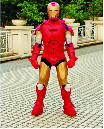 手工制成鋼鐵俠的是網(wǎng)友-Elis-,記者在他的新浪微博頁面上看到了讓人“眼紅”的鋼鐵俠組圖。記者聯(lián)系到了-Elis-,他是廣州大學(xué)華軟軟件學(xué)院大三的學(xué)生高俊源,今年21歲。談到制作鋼鐵俠的初衷,他說單純是好玩兒。高俊源告訴記者,從有動手制作的想法到完成,一共花費(fèi)了12天的時間,“都是利用業(yè)余時間完成的,作業(yè)多時就少花時間,沒事兒就多做一會兒。”為了做這個,他從網(wǎng)上花了300元買來了原材料,然后按照1:1比例制作圖紙,“先是做頭盔,做到第三個頭才像點(diǎn)樣子,然后用雕刻刀把材料裁成胸、背、內(nèi)襯、腰和襠部,用包裝專用熱熔膠粘在一起組合成身子。”初步完成后,高俊源又從五金店買來原子粉補(bǔ)縫,最后噴漆上色大功告成。作品引起了不小的轟動,“同學(xué)們都來摸、拍,差點(diǎn)給拆了。”